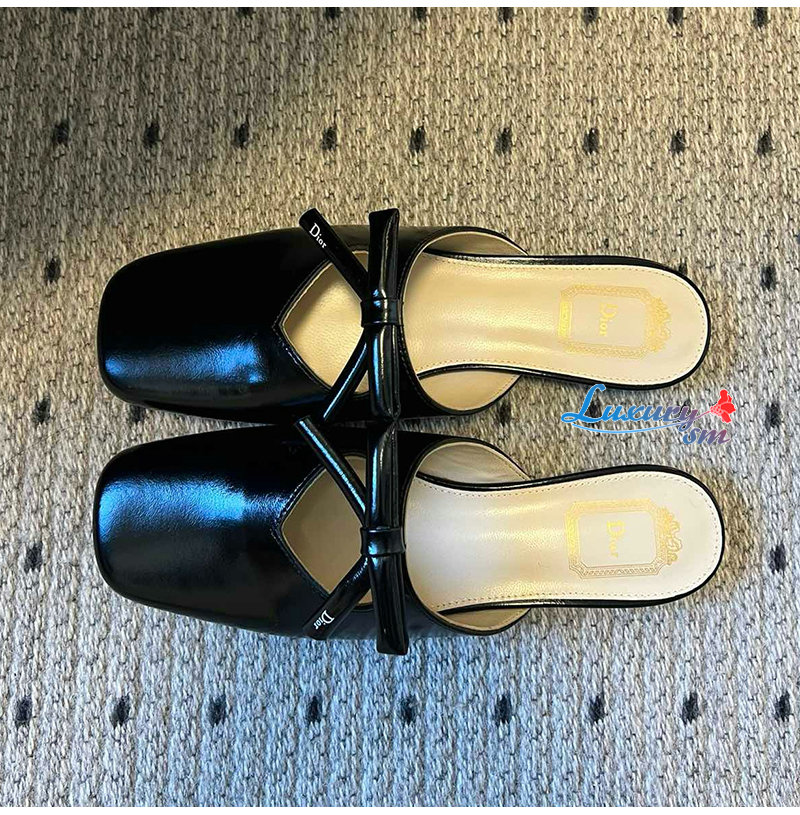 DIOR-3SO306 디올 26SS 봄-여름 시즌 런웨이 스퀘어 토 리본 뮬 플랫 슈즈(3컬러)