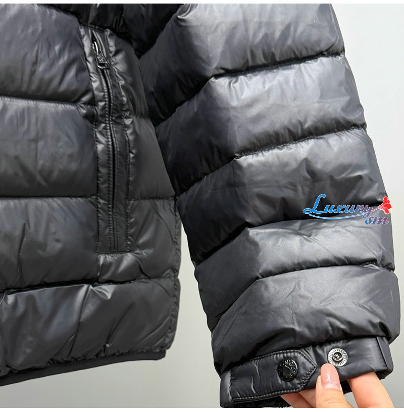 쇼트 푸퍼는 소매 포켓과 로고 퀼팅 디테일이 돋보입니다.