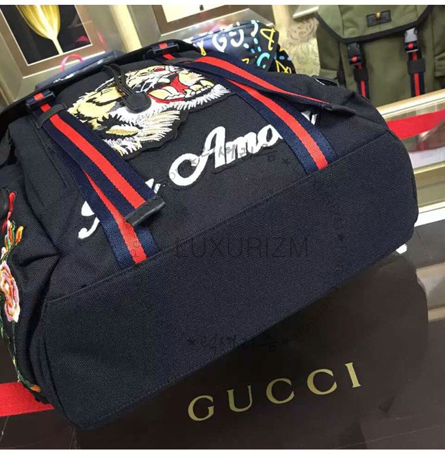 GUCCI-429037 8676 구찌 Techpack 아플리케 자수 장식 백팩 블랙