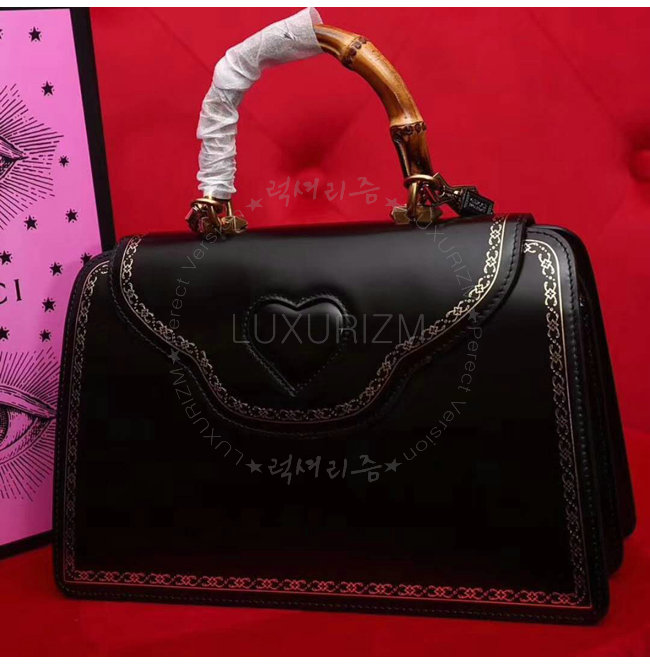 [스페셜오더]GUCCI-495881 8556 구찌 블랙 가죽 프레임 프린트 탑 핸들 백