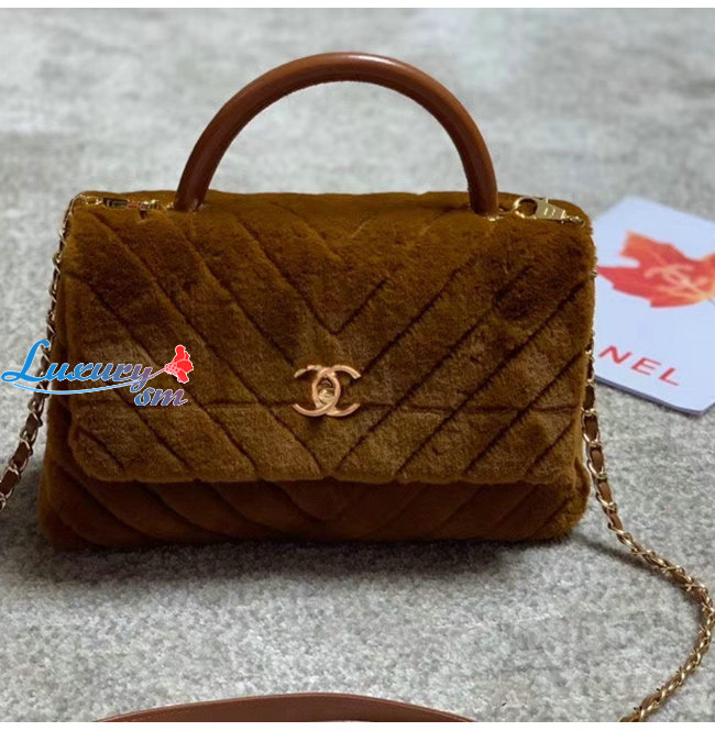 [스페셜오더]CHANEL-A92991 샤넬 브라운 시어링 램스킨 골드메탈 탑 핸들 플랩백
