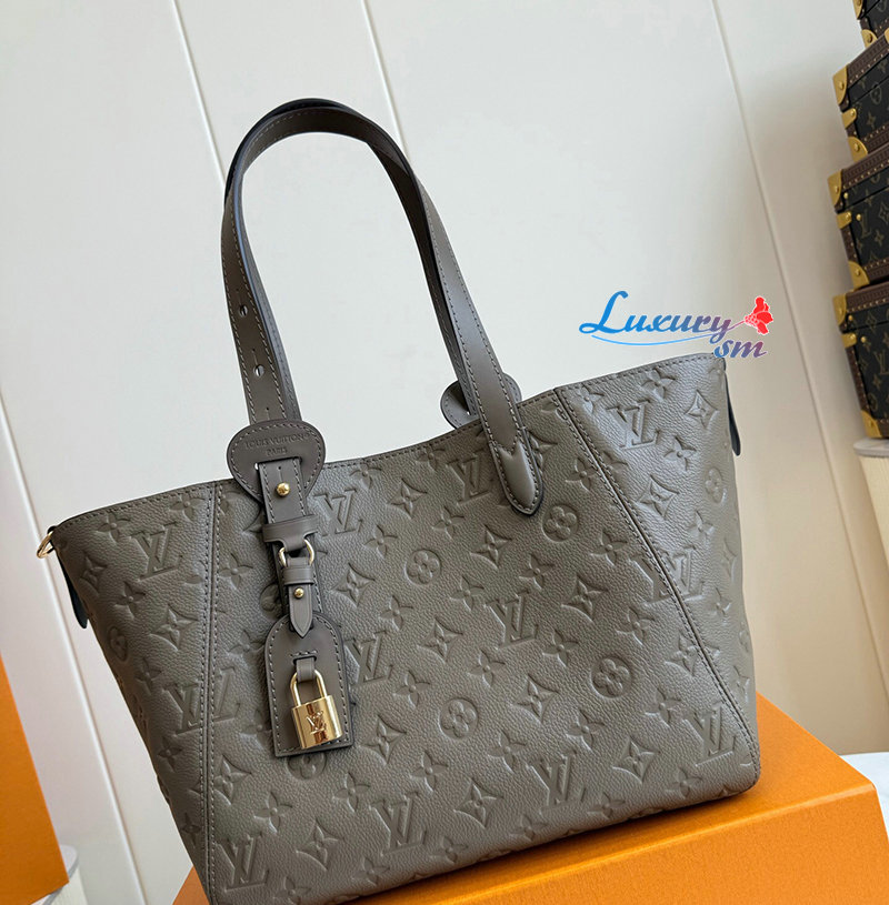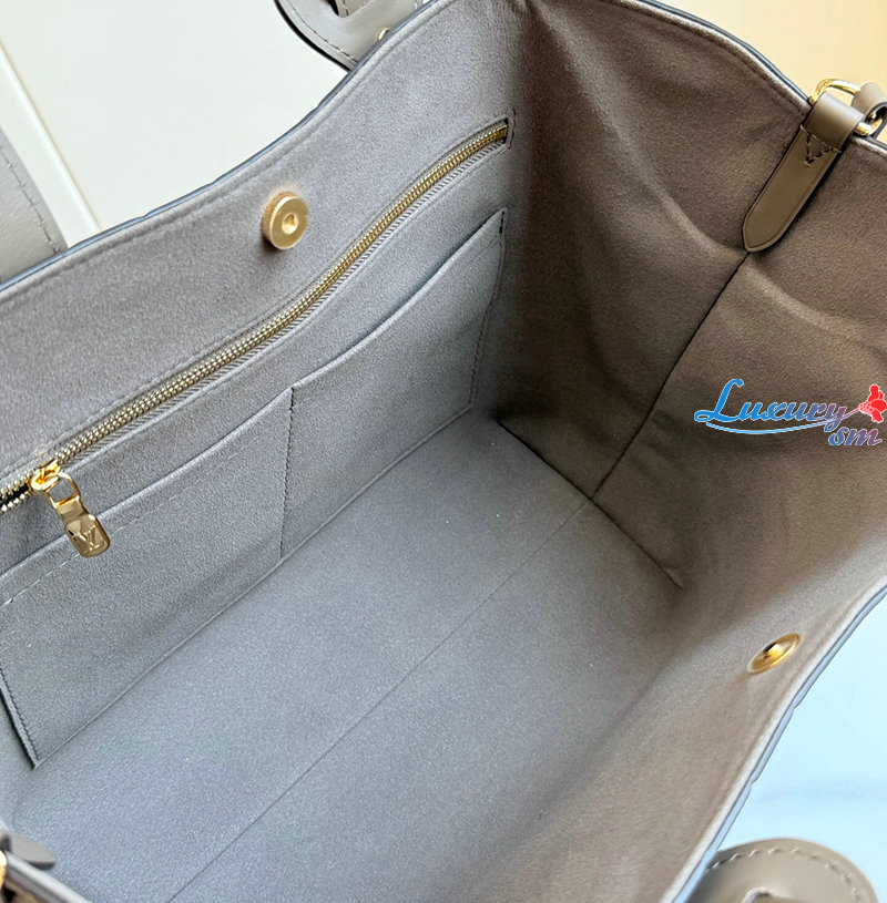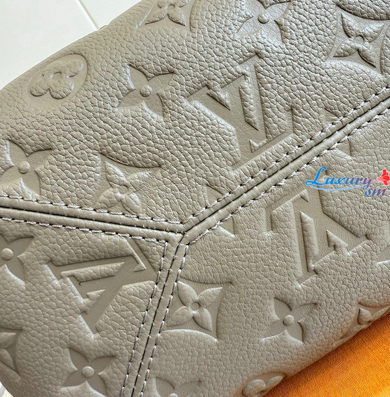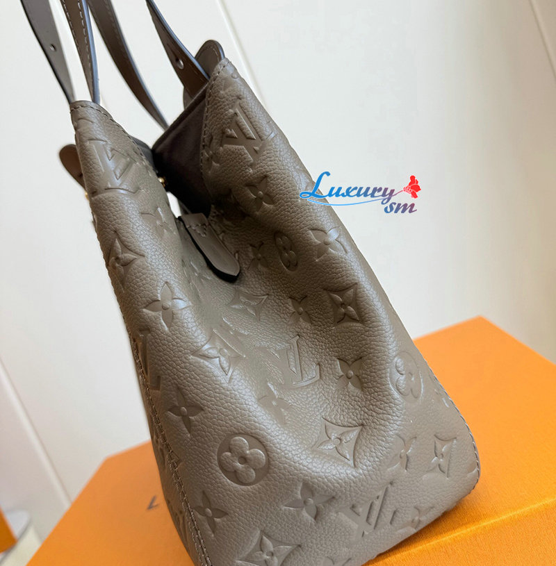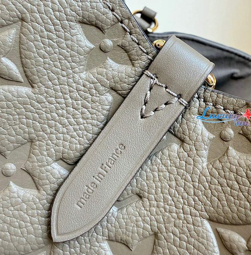 모크 색조의 모노그램 앙프렝뜨 가죽 소재. 골드 색상의