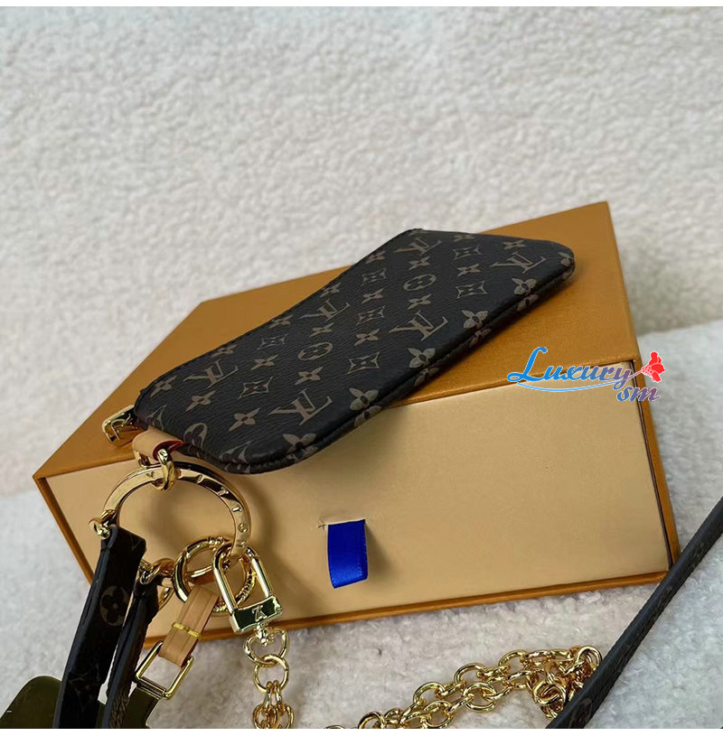 LV 서클 참을 비롯한 골드 색상의 하드웨어로 세련된