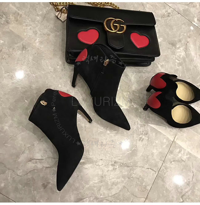DIOR-KDM190 디올 하트 장식 블랙 스웨이드 가죽 앵클 부츠 여성용