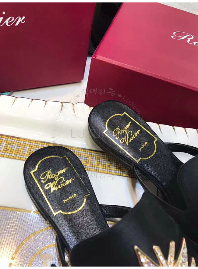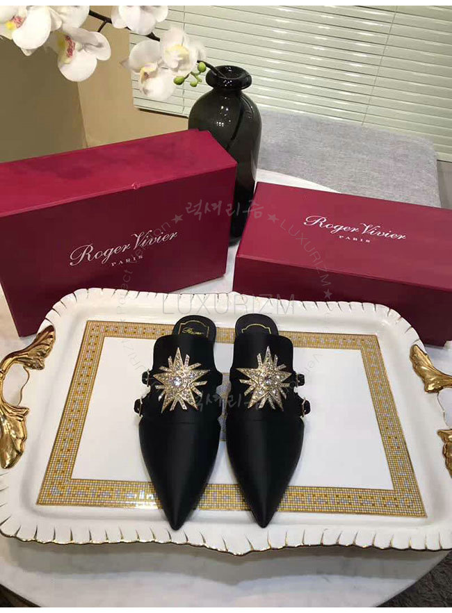 ROGER VIVIER-31319930 로저비비에 블랙 실크 스타 스트라스 샌들 뮬 여성용