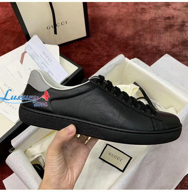 GUCCI-599147 1069 구찌 에이스 블랙 가죽 인터로킹 G 디테일 스니커즈