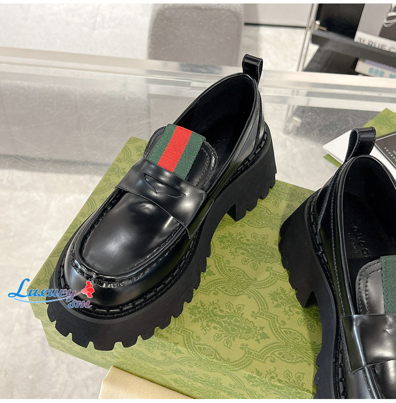 GUCCI-806399 1060 구찌 블랙 샤이니 레더 Web 로퍼 여성용