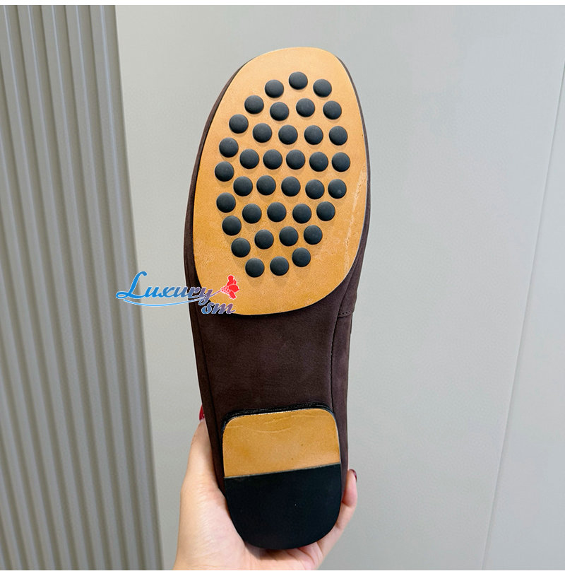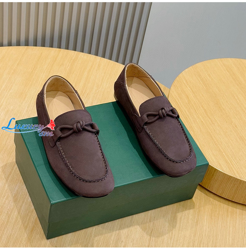 테일을 갖춘 누벅 가죽 소재의 로퍼 두 부분을 스