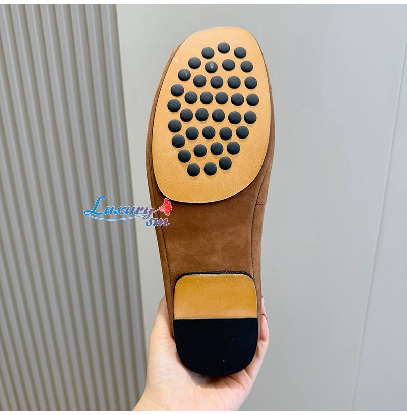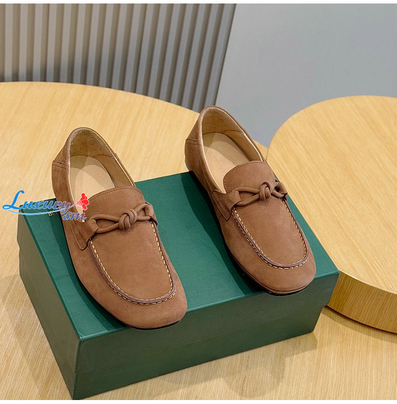 테일을 갖춘 누벅 가죽 소재의 로퍼 두 부분을 스
