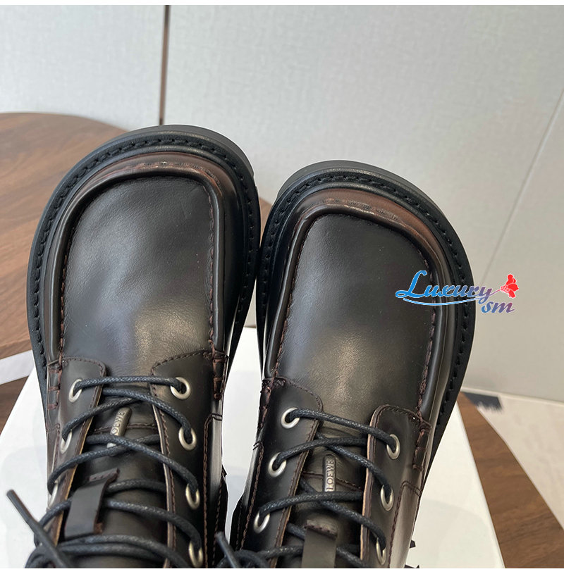 기모 송아지 가죽을 채용한 레이스 업 부츠.