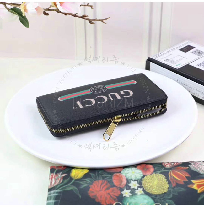 [스페셜오더]GUCCI-496317 8163 구찌 블랙 가죽 Gucci 로고 집 어라운 월릿