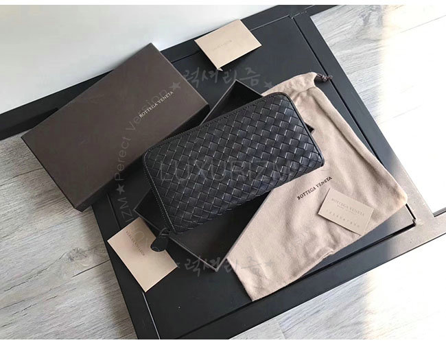[스페셜오더]BOTTEGA VENETA-114076 보테가 베네타 블랙 인트레치아토 나파 짚 어라운드 지갑