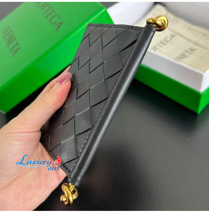 시그니처 놋 디테일을 갖춘 인트레치아토 송아지가죽 소재의 스몰 폴더형 지갑.