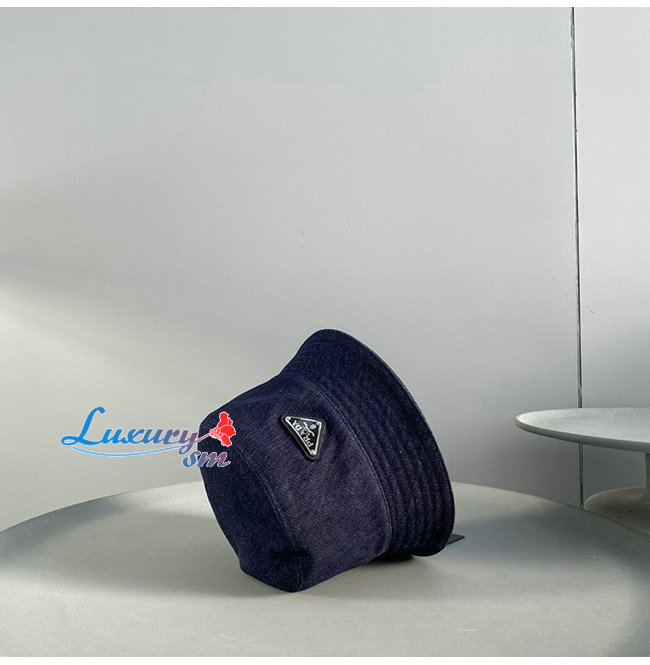 PRADA-10209 프라다 네이비 데님 트라이앵글 로고 버킷 햇 남여공용