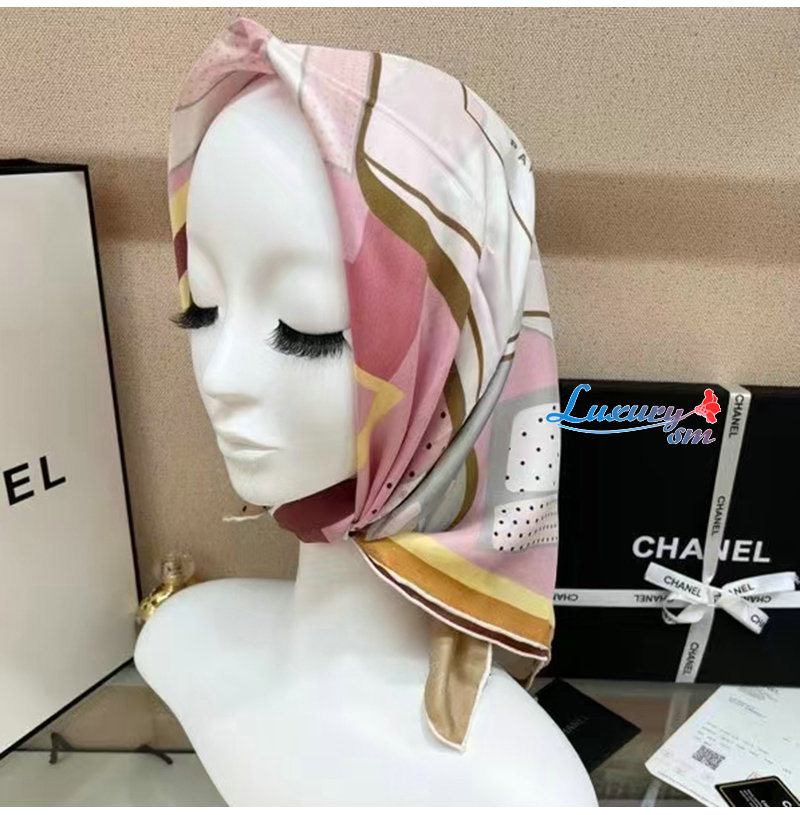 CHANEL-02203 샤넬 핑크 실크 스카프