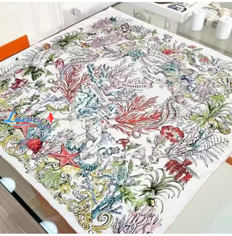 DIOR-51CAM0 디올 아이보리 Dior Cabinet de la Mer 90 스퀘어 스카프