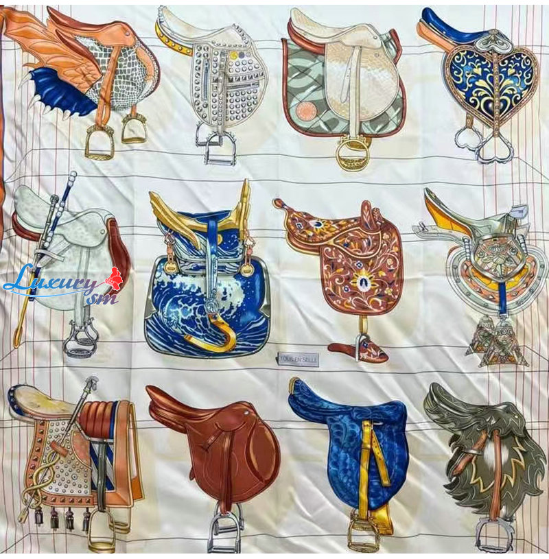 HERMES-H004204S 에르메스 화이트 Tous en Selle 스카프 가격 : 180,000원
