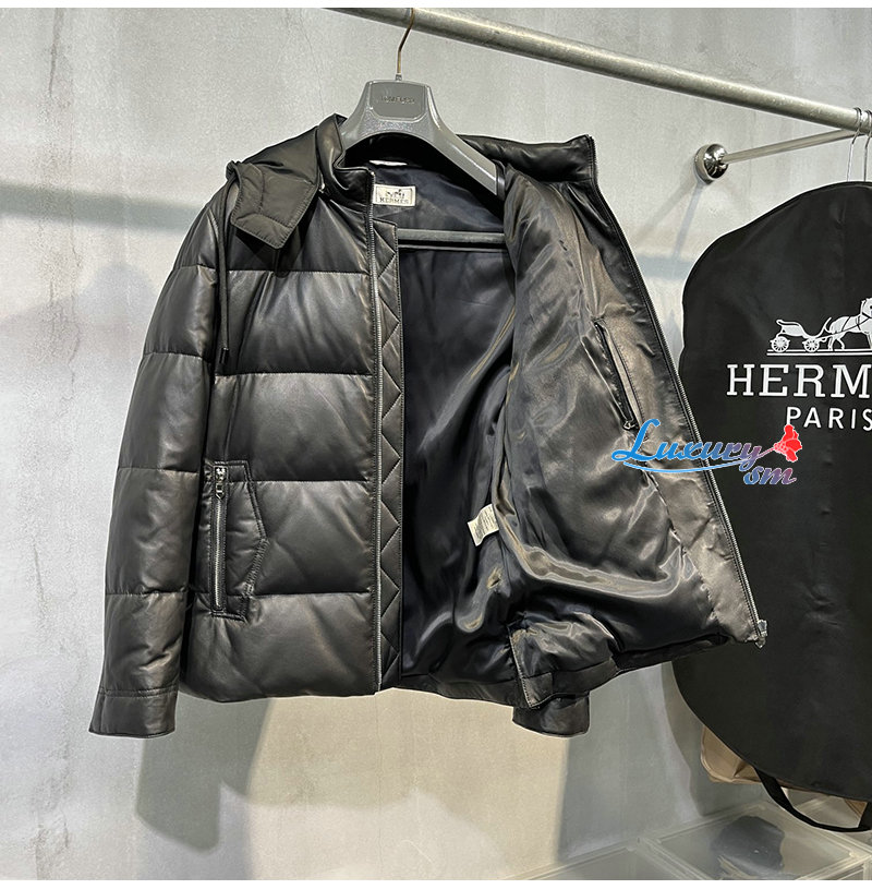 [스페셜오더]HERMES-12213 에르메스 블랙 램스킨 가죽 패딩 남성용