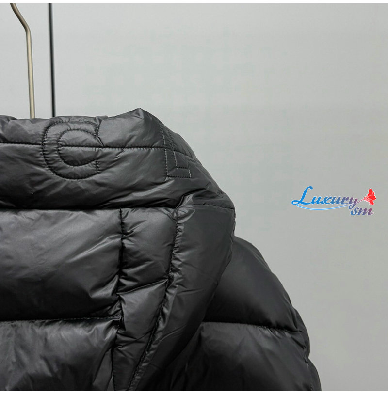 쇼트 푸퍼는 소매 포켓과 로고 퀼팅 디테일이 돋보입니다.
