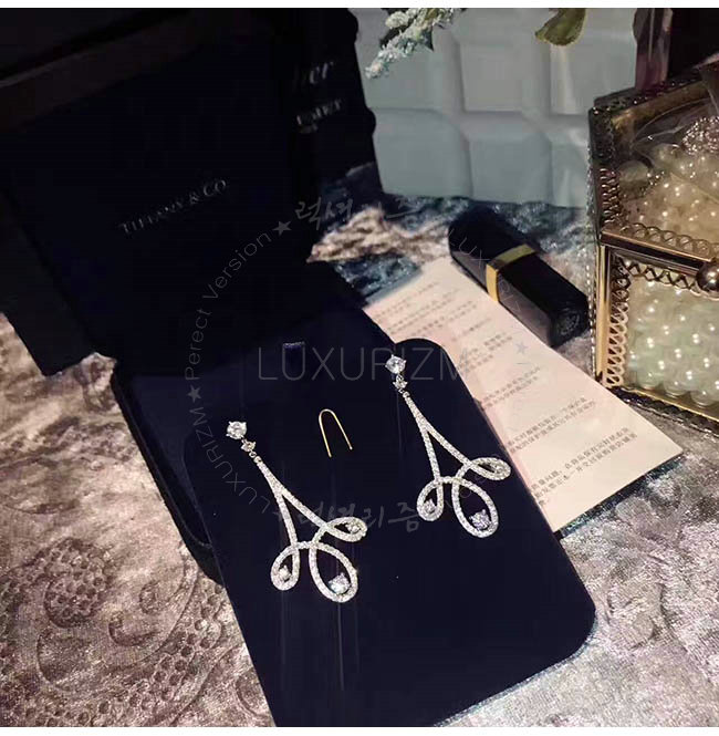 TIFFANY AND CO-TC004 티파니앤코 인챈트 다이아몬드 세팅의 플래티늄 스크롤 이어링