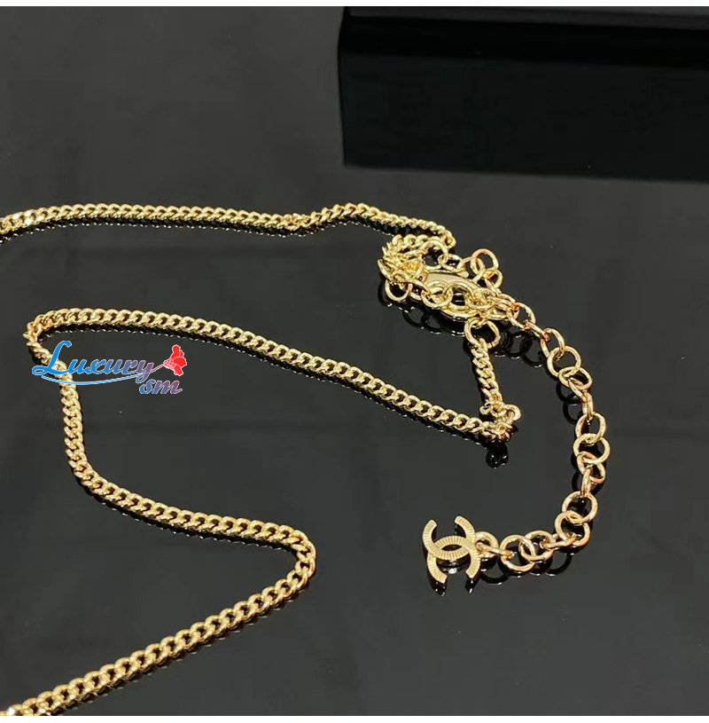 CHANEL-1251 샤넬 골드 크리스탈 장식 CC 로고 목걸이