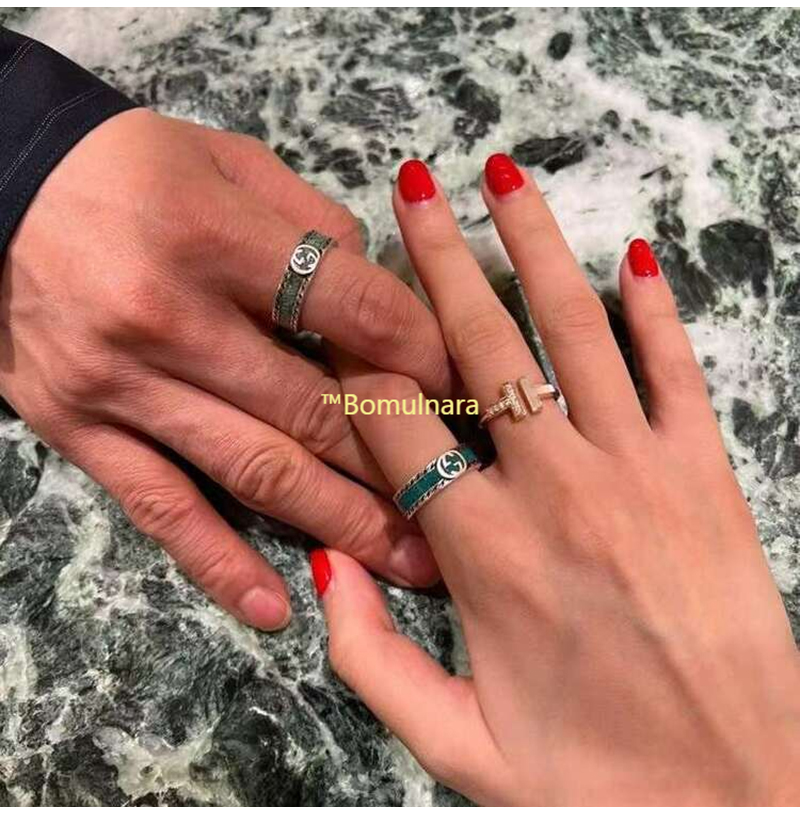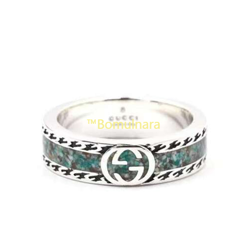 GUCCI-645573 구찌 실버 925 Sterling Silver 라이트 블루/그레이 인터로킹 G 반지