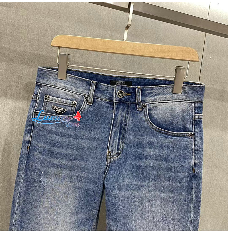 PRADA-06166 프라다 블루 트라이앵글 로고 청바지 남성용