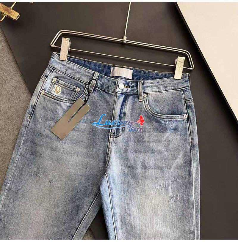DIOR-03083 디올 라이트 블루 아플리케 장식 청바지 남성용