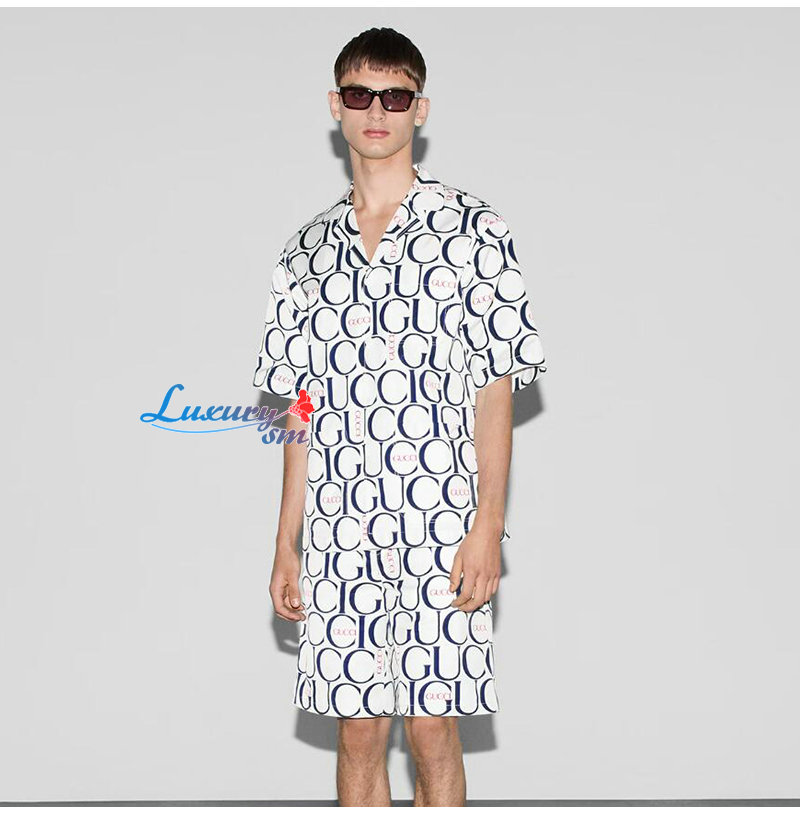GUCCI-787216 9059 구찌 화이트/블루 맥시 구찌 프린트 쇼츠 남성용