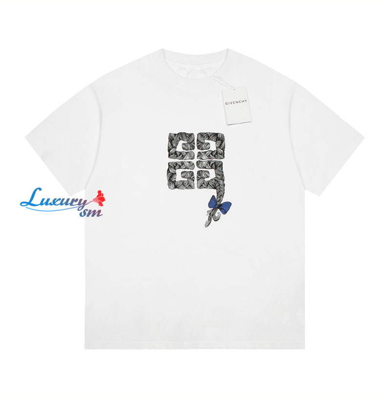 GIVENCHY-07249 지방시 화이트 4G 프린트 장식 티셔츠 남여공용