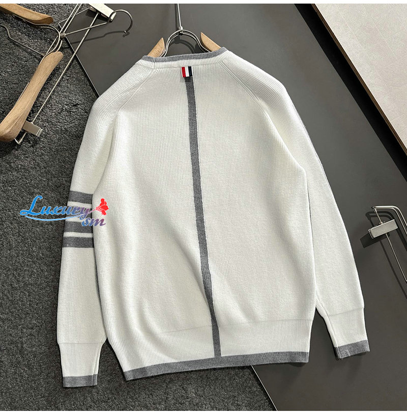 THOM BROWNE-112011 톰 브라운 화이트 스트라이프 장식 스웨터 남성용