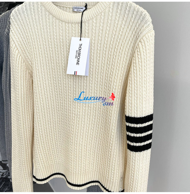 THOM BROWNE-11113 톰 브라운 아이보리 스트라이프 장식 스웨터 여성용