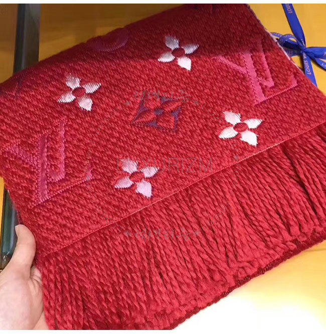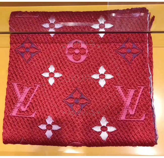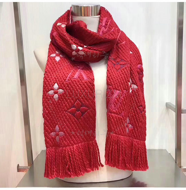 LOUIS VUITTON-M70647 루이비통 로고마니아 레인보우 레드 스카프 여성용
