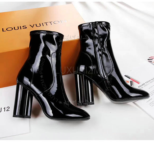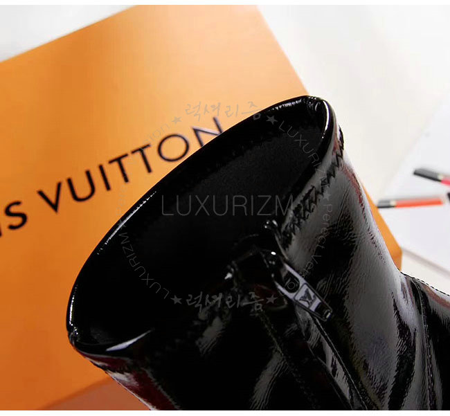 LOUIS VUITTON-1A2XE0 루이비통 블랙 페이턴트 가죽 실루엣 앵클 부츠 여성용