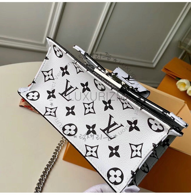 화이트 모노그램 코팅 캔버스 극세사 안감 실버 톤 금속