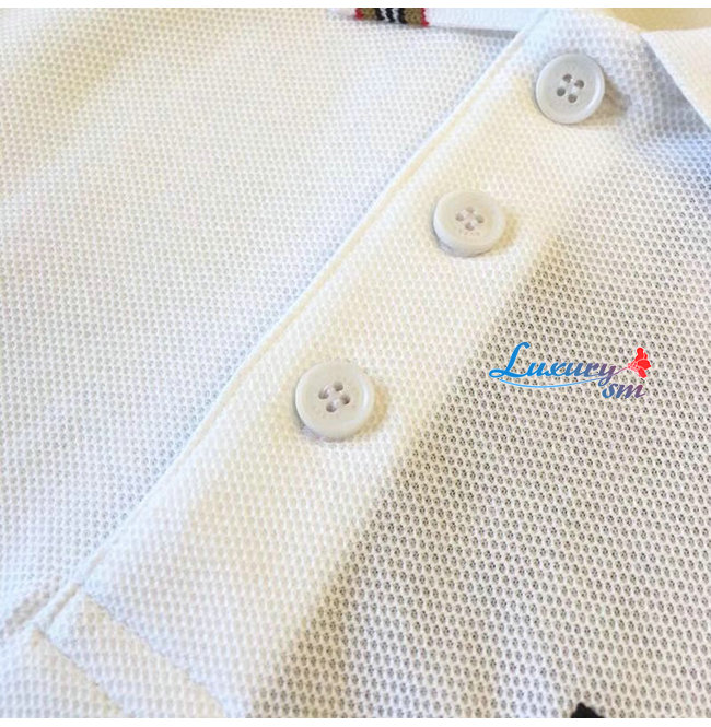 BURBERRY-80092801 버버리 화이트 아이콘 스트라이프 디테일 코튼 피케 폴로셔츠