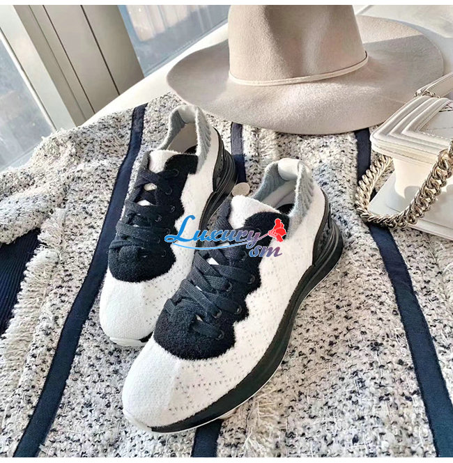 CHANEL-G35199 샤넬 화이트/블랙 믹스드 파이버 스니커즈