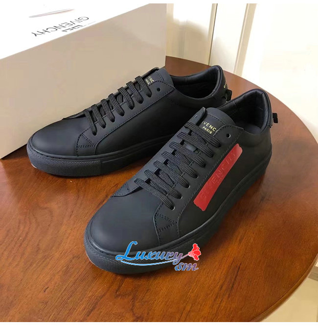 GIVENCHY-BH0002 지방시 블랙 송아지 가죽 라텍스 밴드 장식 스니커즈 남성용