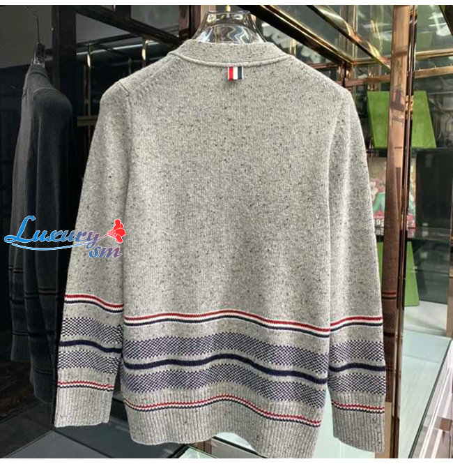 THOM BROWNE-11148 톰 브라운 그레이 니트 코튼 스트라이프 장식 가디건 남성용