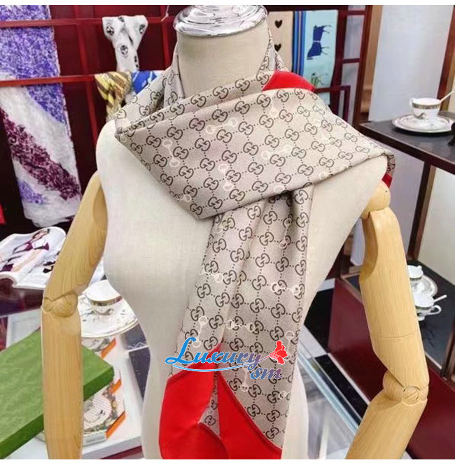 GUCCI-662576 6475 구찌 레드 GG 프린트 홀스빗 실크 스카프