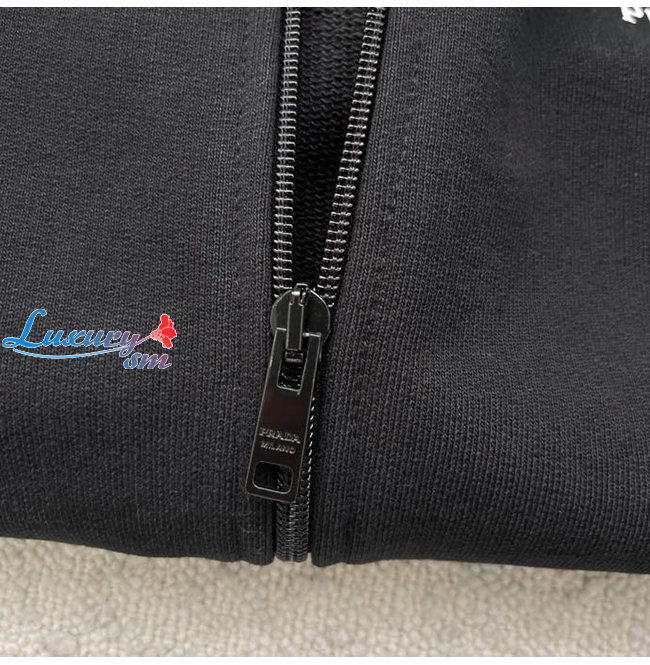 PRAD*-03046 프라다 블랙 코튼 후드 재킷 남성용