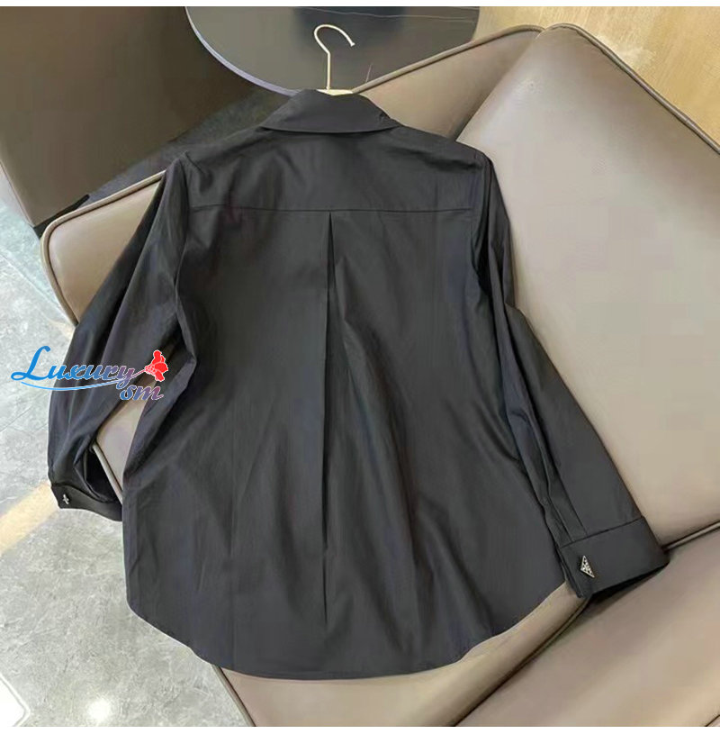 PRADA-02093 프라다 블랙 트라이앵글 로고 셔츠 여성용