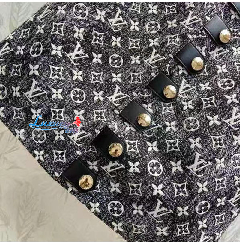 LOUIS VUITTON-1AAUP4 루이비통 그레이 모노그램 데님 버튼 탭 스커트