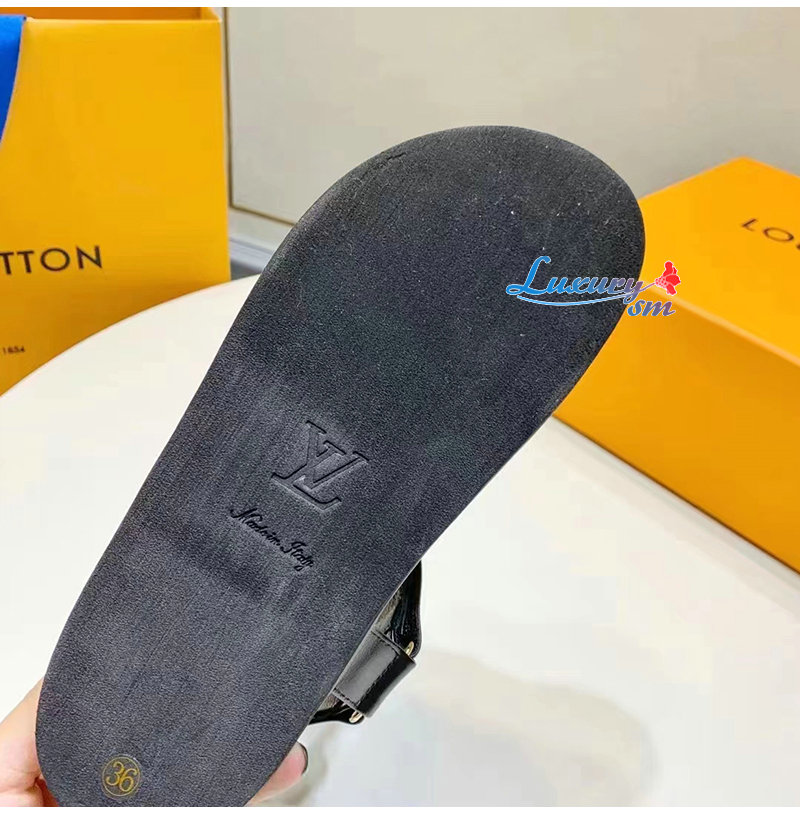 LOUIS VUITTON-1ABW6U 루이비통 블랙 LV 선셋 플랫 컴포트 샌들 남여공용