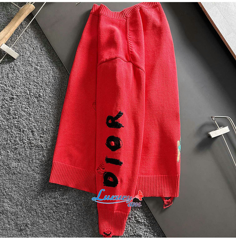 DIOR-01057 디올 레드 니트 코튼 스웨터 남성용