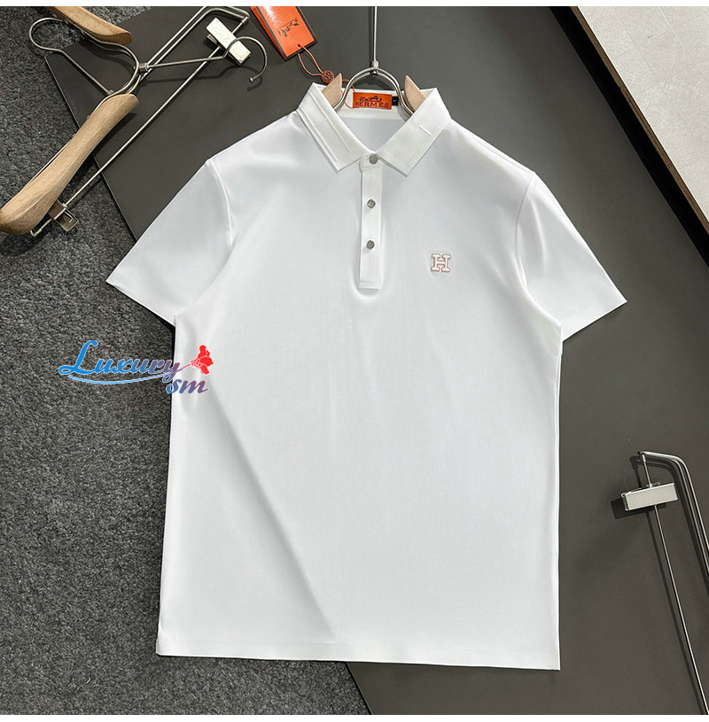 HERMES-031719 에르메스 화이트 코튼 폴로 티셔츠 남성용