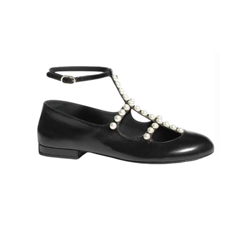CHANEL-G45752 샤넬 블랙 고트스킨 펄 장식 메리 제인 슈즈