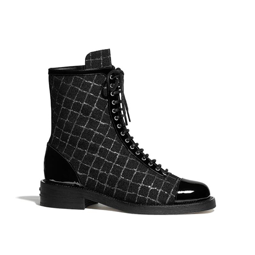 CHANEL-G36209 샤넬 블랙 트위드 페이턴트 카프스킨 쇼트 부츠
