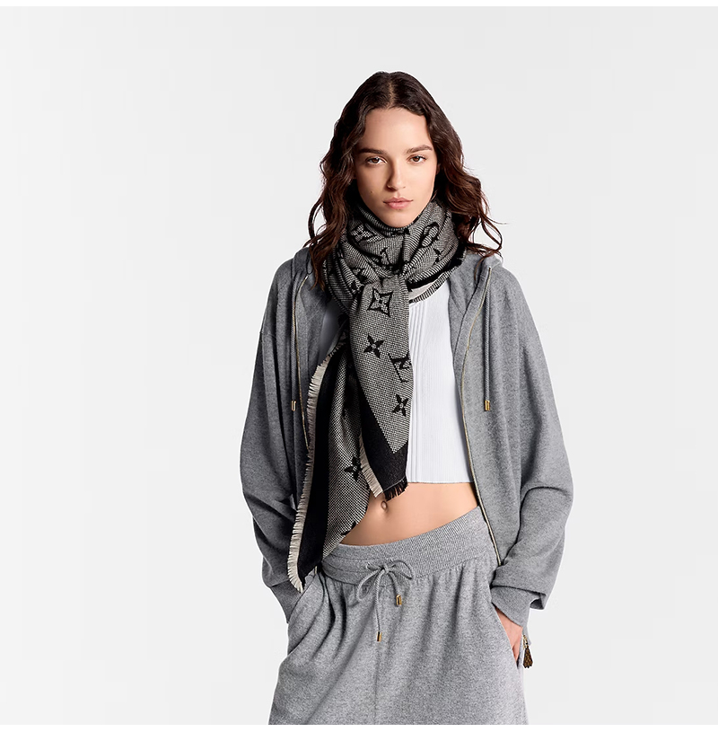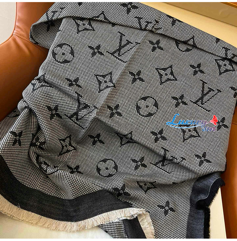 모노그램 숄. 대형 모노그램 패턴과 나테 패브