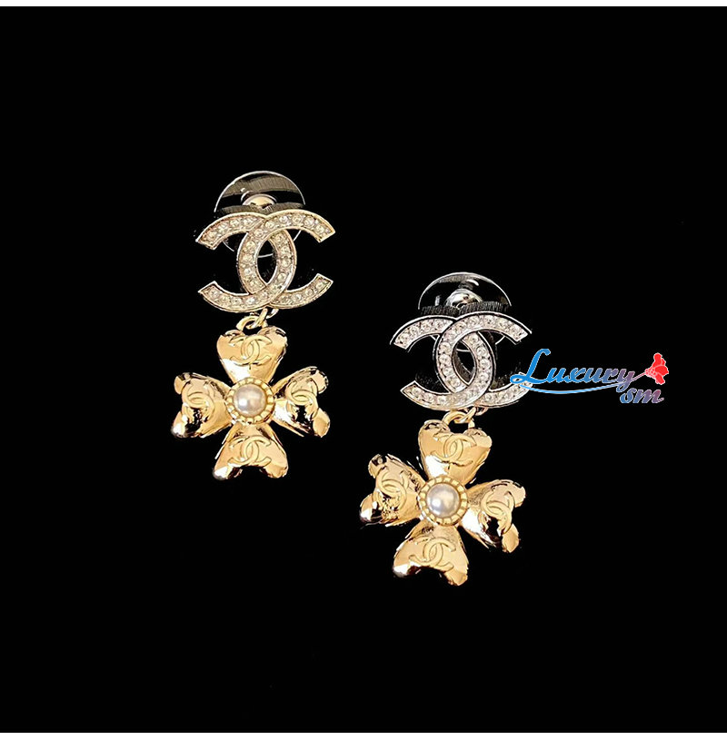 CHANEL-7619 샤넬 더블 C 풀 다이아몬드 펜던트 클로버 귀걸이